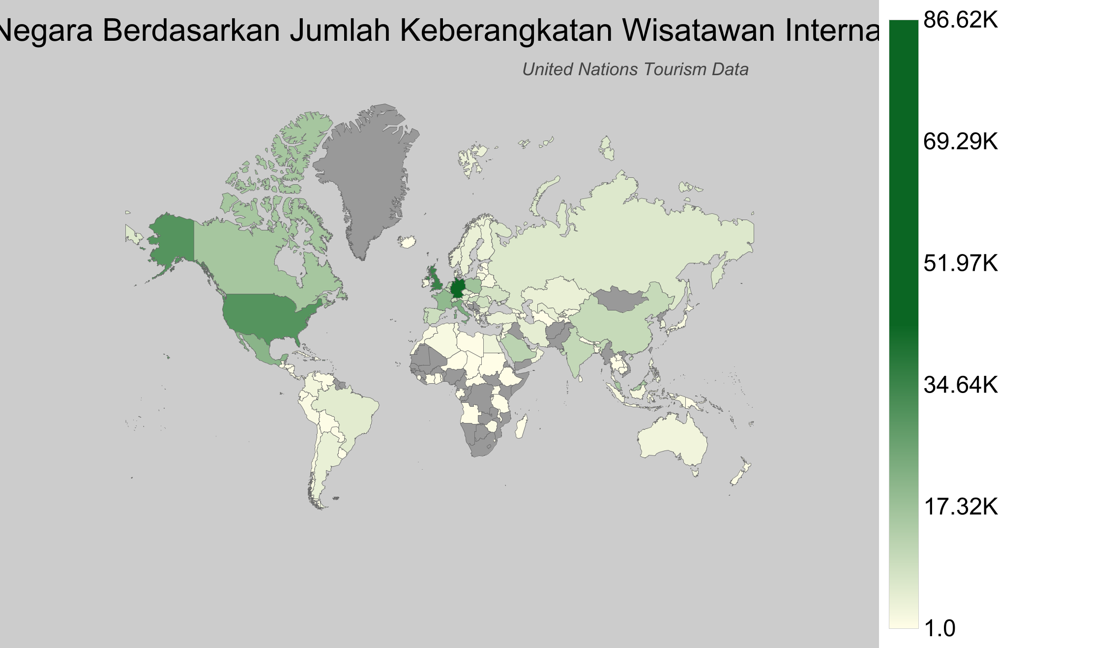 Keberangkatan turis internasional mencerminkan seberapa sering penduduk suatu negara melakukan perjalanan ke luar negeri, menunjukkan kemampuan finansial dan keinginan mereka untuk menjelajahi dunia. Data ini penting untuk memahami tren dan potensi ekonomi global dari pariwisata yang mendorong interaksi budaya dan pertumbuhan ekonomi. Informasi ini diambil dari database pariwisata Perserikatan Bangsa-Bangsa untuk tahun 2023, data terbaru yang tersedia hingga tahun 2025.